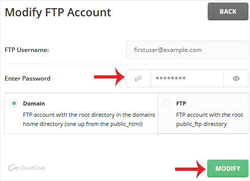 3. Under the list of FTP Accounts, choose the Account for which you want to change the password.